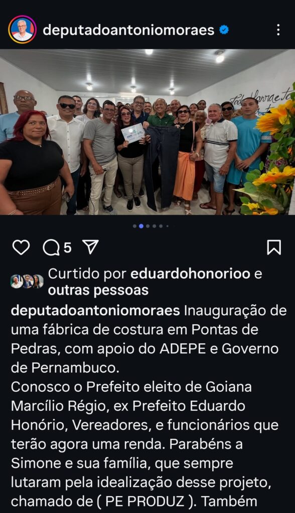 Um indicativo dessa aproximação pôde ser observado nesta sexta-feira (20), quando Cid acompanhou a comitiva de Marcílio Régio em uma agenda pública em Ponta de Pedras. O grupo participou da inauguração de uma fábrica de costura no distrito, um empreendimento que contou com o apoio da Agência de Desenvolvimento Econômico de Pernambuco (ADEPE) e do Governo do Estado. Também estiveram presentes o deputado Antônio Moraes e outras lideranças políticas locais.