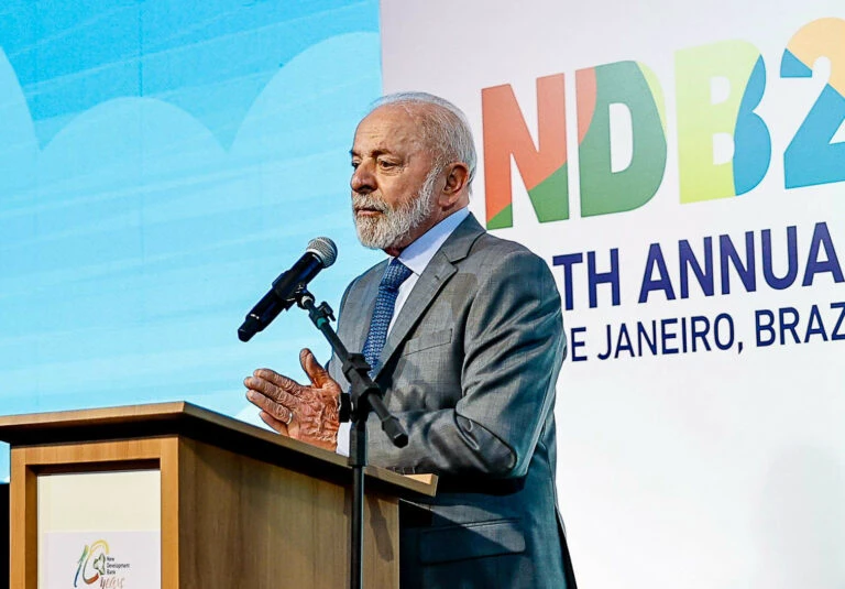 O presidente Luiz Inácio Lula da Silva (PT) reafirmou nesta sexta-feira (4) a defesa de uma moeda comum para o bloco dos Brics, durante a abertura da 10ª reunião anual do Novo Banco de Desenvolvimento (NDB), em evento que antecede a cúpula oficial do grupo marcada para domingo (6). A proposta visa facilitar as transações internacionais entre os países do bloco, formado por Brasil, Rússia, Índia, China e África do Sul.