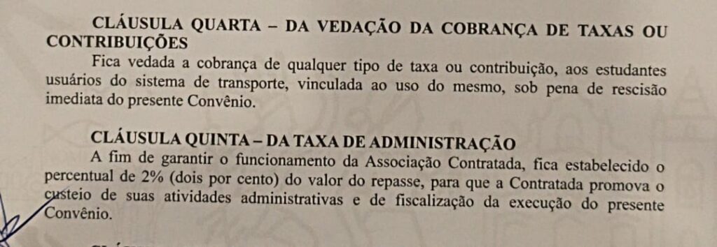 O prefeito Marcílio Régio incluiu no contrato uma cláusula que dispensa os estudantes do pagamento, ao mesmo tempo em que a Prefeitura assume parte dos custos administrativos da ASTUG. “Essa era uma antiga reivindicação dos estudantes que prometemos atender e estamos cumprindo”, afirmou Marcílio.