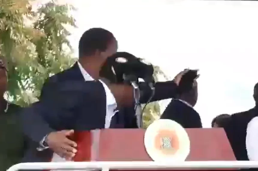 De acordo com a polícia local, o chefe de Estado não foi atingido nem ficou ferido, mas teve de ser retirado rapidamente por sua equipe de segurança. O porta-voz da corporação, Rae Hamoonga, informou que a confusão começou quando parte do público invadiu lojas próximas e iniciou saques.