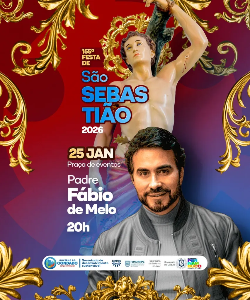 A cidade de Condado já vive o clima de fé e tradição com a divulgação da programação oficial das festividades em homenagem a São Sebastião, co-padroeiro do município e símbolo de devoção há 155 anos. A celebração, que une religiosidade, cultura e participação popular, é uma das mais aguardadas do calendário local e reafirma a identidade histórica do povo condadense.