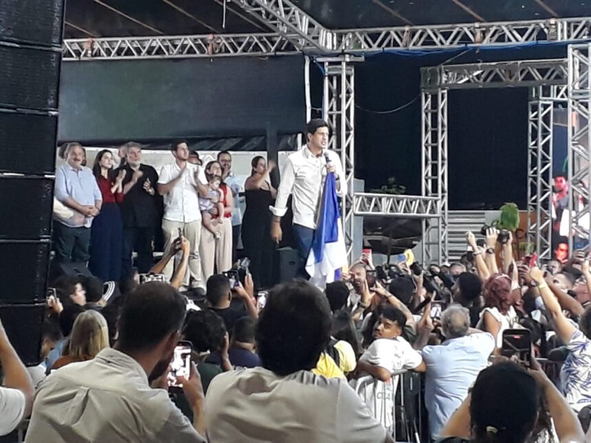 Em um gesto simbólico, João segurou a bandeira de Pernambuco — marca recorrente em agendas da governadora — e reforçou o discurso de pertencimento popular.