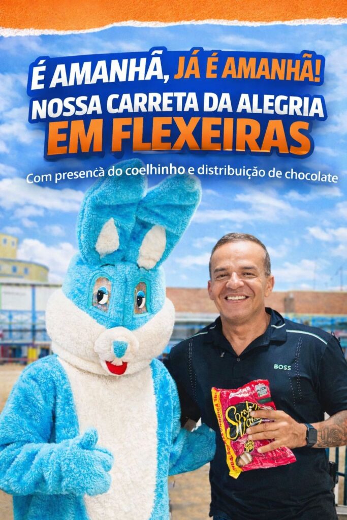 O clima de Páscoa já começa a movimentar Goiana com uma programação voltada especialmente para o público infantil. O articulador político Sérgio Jorge, conhecido como Sérgio da SJS, anunciou a realização da “Carreta da Alegria”, evento que promete levar diversão e ações simbólicas para a população.
