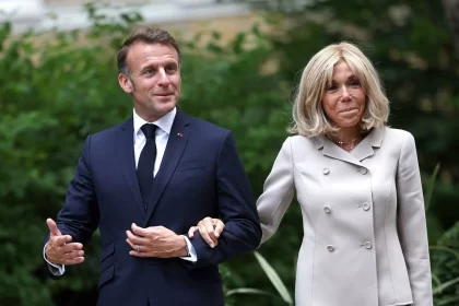 O presidente da França, Emmanuel Macron, e sua esposa, Brigitte Macron, entraram…