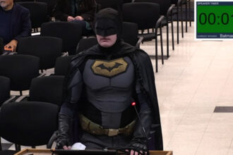 Vestido como o super-herói Batman, um homem não identificado tomou a palavra…