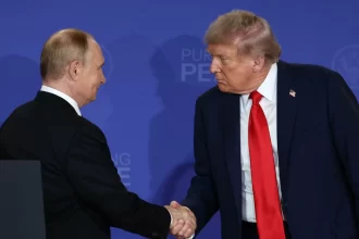 Os presidentes Vladimir Putin, da Rússia, e Donald Trump, dos Estados Unidos,…